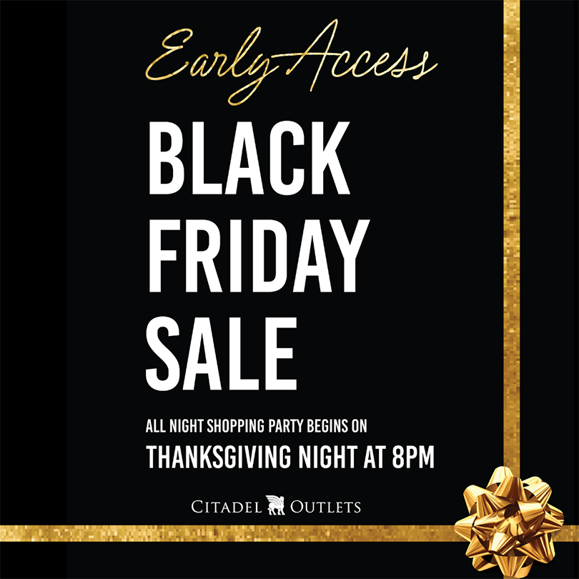 This holiday season, Citadel Outlets is your ultimate shopping and entertainment destination! Take advantage of our 25% Off Pre-Holiday Savings Event and get a head start on your holiday shopping with exclusive deals. Don’t miss the Early Access Black Friday Sale, where you can score unbeatable discounts before the crowds. Celebrate the magic of the season with Santa's Big Day and Breakfast with Santa, perfect for creating family memories. We’re also hosting a special Santa Cares event, designed for children with sensory needs. Enjoy festive fun with our nightly Snow Show, embark on a holiday adventure with the Great Gingerbread Man Hunt, and join us for the 24 Days of Giveaways for a chance to win incredible prizes. There's something for everyone this holiday season at Citadel Outlets!